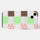 Capa de telefone branca de vassoura, branca, com bolinhas e estrias cor-de-rosa, mauve, castanho, burgundy e verde-sábio. As cores quentes da Terra.