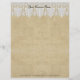 NOTA: este é um design impresso plano, não há lugar elevado, tecido ou elementos em camadas neste produto. COR PALETA: branco, bronzeado, colagem de DESIGN: Correspondência com Papel de Carta de Marca ou Cabeçalho de Carta de Negócio, cabeçalho. Este é um BOHO moderno ou Estilo Boêmiano, inspirado por ciganos, o olhar de na moda de chico moderno. Tem uma beleza simples, limpa, mas adorável. Criado da vintage, era vitoriana ou edwardiana, espiral barroca de queda profunda, modelo de rendas das folhas e ornamentos design de queda de lágrimas que foram graficamente transformados numa elegante e sofisticada fronteira de trim de rendas. Os cadarços são colocados sobre um padrão de fundo texturizado de burlap manchado com chá. Está disponível um conjunto completo de convites para casamento. O verso tem a queda de lágrimas, o padrão do local do ponto de espiral de diamante em um padrão repetido de cheio.