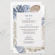 Adicione um toque de charme costeiro à sua recepção com estes lençóis de cardápio de praia, naturais e naturais. Apresentando cascas e corais pintados à mão por aquarelas, esses menus de papel orçamentário duplo são perfeitos para a frente do oceano, a frente da praia, a praia, o resort e os casamentos de destino. Personalize-os fácil e rapidamente, basta pressionar o botão Editar usando a ferramenta Design para reorganizar e formatar o estilo e a colocação do texto. Leve e barato, eles fazem uma bela e prática adição à sua carta de casamento de praia — elegante, personalizável e fácil de combinar com a coleção de cheios. c) O Feliz Cat Studio