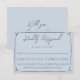 A simple and elegant calligraphy wedding RSVP card. That has a cool blue background and marina blue hand drawn frame and info.