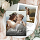 Boho Moderno de Orçamento Manuscrito Lettered Script 2 Foto Casamento Obrigado A Você personalizou o cartão THIN de baixo orçamento de barato. modelo de cartões de agradecimentos de casamento na moda com uma foto vertical de cheio na frente com o texto de sobreposição "Obrigado" em uma fonte de tipografia escrita à mão robusta ou de escrita de caligrafia com a cobertura de pincéis em branco na foto. ***POR FAVOR, NOTE! *** O PAPEL ORÇAMENTAL/FLYER É FINO. *** ATUALIZE O PAPEL PARA UM PAPEL MAIS ESPESTO. *** personalize facilmente o nome e a mensagem do obrigado. Se preferir escrever manualmente a sua nota, basta eliminar o texto de amostra para obter mais espaço. Cartões bonito, elegantes e baratos. Se precisar de ajuda, entre em contato com o designer!