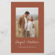 Orçamento Personalize este Boho Simples Elegante Terracotta Burnt Orange and White Na moda Convite com sua mensagem e detalhes com uma foto elegante no verso. Este convite minimalista inclui a tipografia da escrita à mão na moda com uma cor moderna para a celebração especial do dia do casamento.