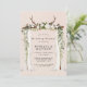 Design apresenta um elemento de folhagem colorido impresso em tons de verde sobre texturas de papel kraft bronzeado com veados e um topo de cobertura branco com script de caligrafia ou escrevendo de tipo. Excelente para as comemorações do casamento!
