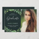 Anúncio de fotos da graduação da Tendy com um elegante roteiro de caligrafia e folhagem botânica de aquarela. Personalize o design com sua foto personalizada, seu nome, data de graduação. Adicione detalhes do convite de festas ou fotos adicionais na parte traseira. Excelente para uma escola secundária, escola secundária, segundo grau ou festa de formandos. Clique em Personalizar para escolher qualquer cor de fundo, alterar as fontes e cores do texto e criar a sua própria única design!