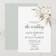 O convite para o casamento Boho apresenta folhas de cor aquosa verde, grama de pampa e flores brancas.