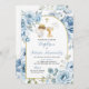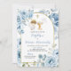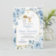 Boho Dusty Blue Floral Boy Baptism Convite