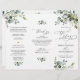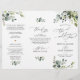 Projetado para coordenar com nossa coleção de casamento Boho Greenery, este programa personalizável de cerimônia Tri-Fold apresenta ramificações de aquarela eucalipto com uma fonte serif clássica e gráficos de texto elegantes para caligrafia. Itens correspondentes disponíveis.