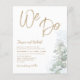Este é um convite de casamento para a caligrafia "Nós Fazemos" moderno e elegante em ouro, num fundo branco, com a adição de eucalipto verde sábio e a coordenação de elementos botânicos. Fácil personalizar o texto para criar algo realmente exclusivo.