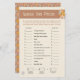 Este retrógrado adivinha o jogo do chá de fraldas de preços. Esta design é perfeita para um tema neutro em termos de gênero com estética boho que apresenta o padrão floral moderno do século médio e a tipografia de groovy. Este tema do chá de "olá, bebê" é divertido e tendencioso com uma grande elegância. Retro cores, vísceras e um giro moderno! Parte da coleção de Chás de fraldas Florais Retro Boho Neutro por Sexo. Faça com que estes convites únicos para chuveiros de bebês, decoração de festas e louças sejam seus próprios, clicando em "personalizar".