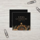 Cartões de visitas florais de vassoura, de cor branca, modernos, com elementos florais e folhas de ouro castanho-úmido e amarelo. Adicione suas informações de contato e mídias sociais à parte traseira da placa, em um fundo preto contrastante que faz com que as cores da Terra sejam pop.