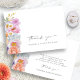 Boho Floral Cartões de agradecimentos de Casamento. Expresse sua gratidão da forma mais bonita com este cartões de agradecimentos ousado e sincero, projetado para complementar um primavera, verão ou casamento outono caprichoso. Um buquê colorido de cor rosa-pincel, fúcsia brilhante, laranja e ouro-amarelos, rosas de lavanda, delfinium azul, margaridas e flores silvestres agarra a frente, junto com uma borboleta fluente para um sotaque doce e atencioso. A parte de trás inclui um espaço para a mensagem do seu obrigado, mantendo a aparência limpa e significativa. Encerre sua celebração com uma nota sincera que reflete a alegria de seu dia especial — comece a personalizar seu obrigado hoje.