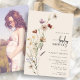 Este convite para na moda e chá de fraldas elegante apresenta lindas flores silvestres de cor d'água pintadas manualmente, organizadas como um buquê adorável e um roteiro elegante de caligrafia. O verso inclui uma foto para personalização. Localize itens correspondentes na Coleção de Chás de fraldas de flor selvagem do Boho.