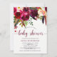 Este convite de chá de fraldas apresenta flores a aquarela bonito em tons vibrantes de marsala, vinho, verde profundo, vermelho e roxo, e correspondendo à tipografia moderna.