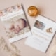 Este elegante cartão de anúncio de nascimento apresenta um tema floral pampas. Personalize com 1 foto na frente e 2 fotos na parte de trás, junto com todas as informações de parto do seu bebê.