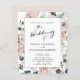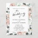 Orçamento Tudo em Um com Detalhes sobre Caligrafia Moderna Dusty Rosa Boho Convite Floral de Casamento... Nossa barato de "frente e verso", rosas de bô e convite para o casamento da caligrafia apresenta um arranjo de rosas rosas empoeiradas e empoeiradas e eucalipto verde enquadrando seu texto de casamento na caligrafia moderna e na elegante tipografia serif. A parte traseira do convite contém todos os detalhes que você normalmente veria em cartões separados no pacote de casamento, incluindo tempo e local de recepção, opções de alojamento, site de casamento, RSVP e informações de registro de presentes. Este convite de casamento ao estilo moderno foi concebido para ser elegante e consciente do orçamento... bem como para poupar tempo. O exemplo de código QR e todo texto de exemplo (além dos elementos de caligrafia gráfica) podem ser facilmente revisados com suas próprias informações sobre o modelo de personalização.