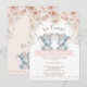 Chá de fraldas de gêmeos doces, com dois elefantes de aquarelas bonitinhos e um delicado arranjo floral cor-de-rosa com uma pitada de folhagem verde-salva. Esta design é ideal para alguém que procura um convite para chá de fraldas de elefantes gêmeos inspirado na boemia floral e que está certo de definir a cena para um chá de fraldas que se avizinha.