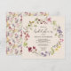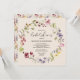 Este chá de panela botânico apresenta uma coroa floral de flores silvestres de aquarelas sobre fundo creme. As palavras "chá de panela" aparecem em um guião elegante de escrita manual. Personalize o resto do texto com o nome da noiva-a-ser, o local do chá e outros detalhes. O verso apresenta um padrão coordenado de flor silvestre.