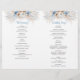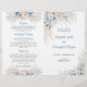 Programa de cerimônia de casamento em azul floral boêmio elegante e rosas marfim com capim dos pampas dobrado, planejamento de dia de casamento com folhagens, programa de cerimônia de casamento, agenda de casamento em verde e dourado,