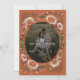 Uma tomada única na coroa floral com toques de pêssego e marrom sobre um fundo de quadro de cor personalizado; ilustração original de Becky Nimoy.