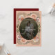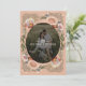 Uma tomada única na coroa floral com toques de pêssego e marrom sobre um fundo de quadro de cor personalizado; ilustração original de Becky Nimoy.