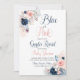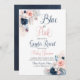 Gênero Boho Azul ou Rosa Revela Convite com Marinho e flores esbranquiçadas