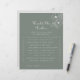 Esta "boho verde" que ela gostaria de jogar chá de panela é perfeita para uma celebração clássica do chá de panela. A design apresenta flores e flores de maçã aquarela em fundo verde.