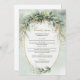 Imaginem isto: um cardápio oval de ouro de folhagem boho verde eucalipto, a estrela do show num casamento com sua beleza encantadora e elegante. Este cardápio é como uma floresta misteriosa encontrando um toque de luxo, criando uma harmonia encantadora que os hóspedes não esquecerão. Os sotaques dourados acrescentam um traço de glamour ao verde-terra, fazer-o um banquete para os olhos antes mesmo de começar o banquete para as papilas gustativas. Então, se você quer que o seu casamento tenha aquela mistura perfeita da natureza e da sofisticação, este menu inspirado em boho é definitivamente o caminho a seguir!
