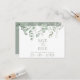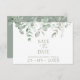 Boho Greenery Foliage Eucalyptus Wedding Salve o Cartão-Data. Imprime estigmaticamente seus convidados de casamento com este cartão elegantemente desenhado para salvar a data do casamento, com lindas folhas verdes de eucalipto em um fundo branco nítido. Este cartão salva-vidas do casamento tem um belo design de folhagem verde, com vibrações rústicas e botânicas, perfeito para o seu casamento rústico, verde ou eucalipto. A disposição mínima e moderna chama a atenção para os arranjos elegantes, verdes, de folhas de eucalipto, estabelecidos sobre um fundo minimalista com uma delicada fonte verde-escura. Este cartão de salvamento do casamento vai dar o tom para um belo cenário de casamento rodeado de verde prata ou de decoração de casamento verde sábio. Uma adição perfeita a qualquer celebração botânica ou rústica.