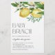 Convide convidados para o seu evento com esta papelaria personalizável de convites para bebês. Apresenta um buquê de aquarelas de limões e de limões brancos. Personalize este convite para o brunch de chá de fraldas de limão adicionando seus detalhes de evento. Este convite para bebês botânicos é perfeito para chás de fraldas de primavera e verão.
