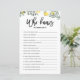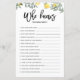 Quem conhece melhor a mãe? Adicione este cartão de jogo de chá de fraldas botânico divertido ao seu evento. Apresenta ilustrações de aquarelas de limões e verde. Você pode personalizar o cartão adicionando textos de volta. Este cartão de chá de fraldas de limão é perfeito para chás de primavera e verão.