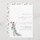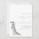 Um bonito convite de casamento com um arranjo de canto de flores selvagens amarradas e soltas, de cor aquática, em lilás e roxo. "casamento de" está na letra lilac do guião moderno e o reverso apresenta um padrão de flores lilás e roxas de aquarela.