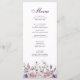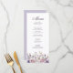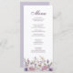 Elevem a sua mesa de casamento com esta Carteira Boho Mauve e Lilac Floral. Adorada com elegantes florais de aquarelas em mauve macio e matizes lilases, esta design adiciona um toque romântico e refinado à sua recepção. A tipografia do estilo "boho" de ameixa profunda contrasta lindamente com os florais, criando um olhar sofisticado e coeso. Ideal para o inverno ou o início da primavera, este cardápio se encaixa perfeitamente com eventos rústicos, boêmicos ou de jardim. Totalmente personalizável para refletir o seu estilo e menu de casamento únicos.