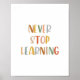 Boho nunca pára de aprender Poster, Sinal de Motivação de Cotação Inspiracional