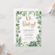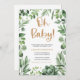 Boho Eucalyptus Greenery Succulent Chá de fraldas InvitationO design apresenta um buquê de verde-aquarela, eucalipto. A design também apresenta um efeito de texto dourado para o título "Oh Baby".