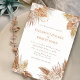 Apresentando nosso belo convite para casamentos Boho Pampas Garden! Inspirada pela beleza natural da grama-palmeira, folhas de palma secas, peônias delicadas e orquídeas, essa design captura a essência da elegância boho. A paleta de cores apresenta tons de castanho, bege e e cor-de-rosa pincel suave, criando uma mistura harmoniosa com os elementos botânicos. Nosso convite mostra uma combinação perfeita de arte e sofisticação. A fonte boho elegante usada para o texto complementa a design geral, garantindo um apelo estético perfeito. Cada detalhe foi cuidadosamente elaborado para criar uma experiência exclusiva e personalizada para o seu dia especial. Este convite é totalmente personalizável, permitindo que você adicione seu próprio toque pessoal. Quer esteja ajustando a redação ou incorporando detalhes específicos, você tem a liberdade de torná-la realmente sua. Nosso objetivo é oferecer a você um convite de casamento que reflita seu estilo e dê o tom para uma celebração inesquecível. Peça seu convite de casamento feito à mão hoje e deixe o encanto da grama de pampas pintada à mão, folhas de palma secas, peônias e orquídeas encantarem seus convidados. É hora de embarcar em sua bela jornada juntos, cercado pela elegância da natureza e pelo calor de seu amor.