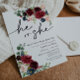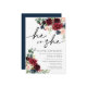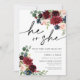 Boho Burgundy e Blush Ele ou ela é um convite. Esse convite se caracteriza por boho burgundy e rosas e flores esmagados com duas fontes modernas de alta classe que moldam as tendências dos eventos festivos atuais e futuros.