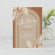 Convites russos para bebês boêmicos com formação de fundo de terracota com uma característica de arco-íris, folhas secas de palma do deserto com aquarela, grama pampas, e um modelo chá de fraldas elegante que é fácil de personalizar.