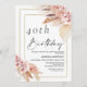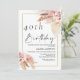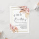 Bohemian inspirou um convite de aniversário com dois arranjos florais cor de terra e rosa pálido, com grama pampas e uma imagem caligráfica moderna como título. Ideal para quem procura um aniversário inspirado na boêmia.