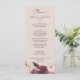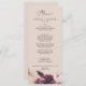 Este cartão de janto de casamento de pastel de boho pampas é perfeito para um casamento de verão. O design de aquarela floral apresenta uma burgundia boêmica e flores cor-de-rosa pinceladas com ranhuras de erva-pampas neutra e folhas de palma secas de ouro. Este menu pode ser usado para recepção de casamento, janto de ensaio ou qualquer evento.