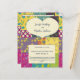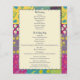 Um gráfico de forma cardíaca é colocado sobre um fundo de colcha floral neste programa de casamento que tem um aspecto quente e colorido. O programa de dois lados tem um programa de cheios e uma lista de participantes no verso com os nomes da noiva e do noivo, a data e o local do casamento e uma citação opcional na frente.