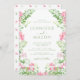Mergulhe na sofisticação refinada com este belo convite de casamento boêmico, com pétalas de flores rosas graciosas e folhas verdes formando intricadamente uma coroa cativa. Perfeito para comemorações de primavera ou verão, este convite exumenta elegância eterno e beleza delicada, dando o tom para seu dia especial.
