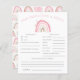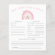O tema do arco-íris Boho predições de bebê chá de fraldas e cartão de aconselhamento com ilustração de um arco-íris cor-de-rosa pastel. Os textos são editáveis. Um jogo perfeito para jogar durante o chá e definitivamente será um excelente! O cartão aos hóspedes para predizer como o bebê se pareceria.