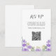 Este cartão RSVP de casamento boho apresenta trabalho de arte floral de cor d'água original em tons delicados de roxo em um fundo branco nítido, criando um aspecto macio e romântico. Projetado tendo em mente a conveniência, ele inclui espaço para o seu site de casamento e um código QR, fazer fácil para os convidados responderem e acessarem todos os seus detalhes de eventos. Perfeito para uma celebração inspirada na boêmia, este cartão RSVP adiciona um toque de encanto artístico à sua suíte de casamento.