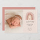 Um belo e sincero anúncio de nascimento para o seu bebê arco-íris apresenta um arco-íris desenhado à mão em cores de tom de terra inspiradas em boho, com "boas-vindas [nome]" e estatísticas de nascimento de bebê embaixo. Personalize com uma foto em cada lado e adicione uma mensagem pessoal ao verso.