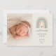 Um belo e sincero anúncio de nascimento para o seu bebê arco-íris apresenta um arco-íris desenhado à mão em cores de tom de terra inspiradas em boho, com "boas-vindas [nome]" e estatísticas de nascimento de bebê embaixo. Personalize com uma foto em cada lado e adicione uma mensagem pessoal ao verso.