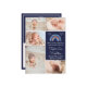 Este cartão de anúncio de bebê giro e caprichoso apresenta um arco-íris boêmico em azul e laranja com corações brancos em um fundo azul marinho. O texto combina o script manuscrito e as fontes serif para uma aparência na moda e moderna. Ele pode ser personalizado com as estatísticas de natalidade do seu bebê, como nome, tamanho, data e hora de nascimento e você pode mudar as fotos de modelo para as suas.