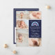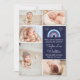 Este cartão de anúncio de bebê giro e caprichoso apresenta um arco-íris boêmico em azul e rosa com corações brancos sobre fundo azul marinho. O texto combina o script manuscrito e as fontes serif para uma aparência na moda e moderna. Ele pode ser personalizado com as estatísticas de natalidade do seu bebê, como nome, tamanho, data e hora de nascimento e você pode mudar as fotos de modelo para as suas.