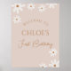 Boho retro castanho claro, margarida floral primeiro aniversario de boas-vindas.