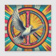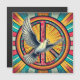 Dove e sinal de paz feitos no estilo "boho retro". Vermelhos, azuis e amarelos.