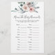 Nome do chá de fraldas temático Boho rosa, o cartão de jogos para bebês animais apresenta uma ilustração rosa-d-água cor-de-rosa e verde-d-água eucalipto garland e uma elegante fonte de estilo manuscrito.